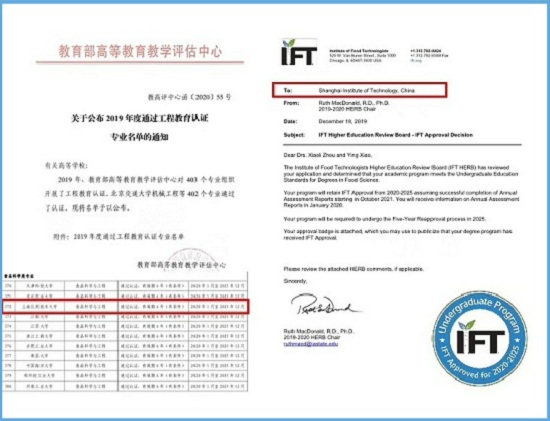 我校食品科学与工程专业于2019年12月通过美国IFT食品专业国际认证,本次通过工程教育认证(《华盛顿协议》互认),成为我校首个获得“双认证”专业,是我校工科教育国际化的新突破,不仅为我校工程教育的国际化打开了新局面,也为我校专业建设和发展发挥了示范和引领作用。同时也是学校坚持建设具有国际影响力的高水平应用创新型大学的重要成果之一,对促进和提高我校专业建设发展具有重要意义。