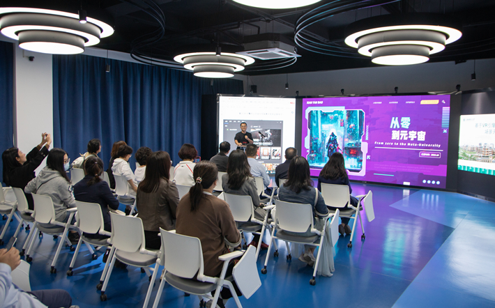 会前,徐汇中学教师一行参观了学校校史馆,VR实验室、轨道交通学院实验室以及生态植物园。