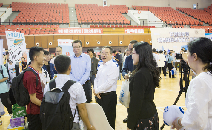 校党委书记郭庆松,校长汪小帆,校党委副书记、副校长王瑛,副校长毛祥东,分别来到迎新现场并深入新生宿舍,视察指导迎新工作,看望风尘仆仆来到学校的本科新生及家长。