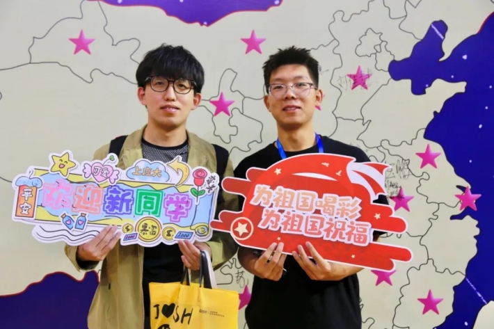 迎新报到现场随处可见的指示牌和展板,满满当当的“新生大礼包”,热情洋溢的志愿者们都表达着上应人的热忱。师生志愿者悉心引导提供着细致周到的服务,一切井然有序,只为让萌新真切感受上应大的温度。