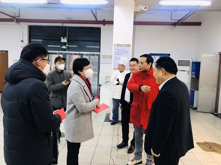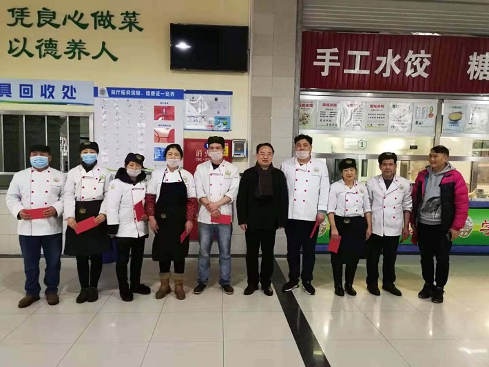 校领导深入食堂,详细了解节假日食堂用餐情况,并对食堂厨师春节期间为师生提供丰盛可口的节日佳肴表示赞赏。