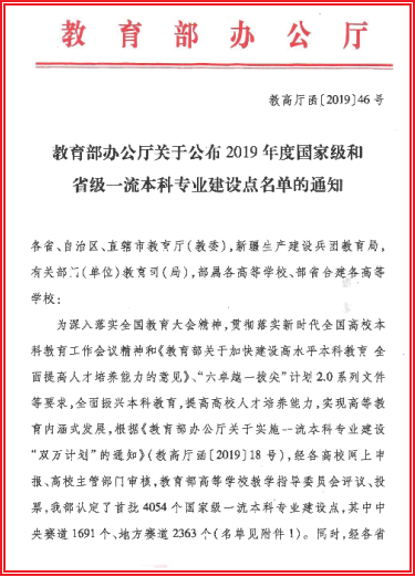近日,在教育部办公厅印发的《关于公布2019年度国家级和省级一流本科专业建设点名单的通知》(高教厅函[2019]46号)中,我校材料科学与工程专业成功入选国家级一流本科专业建设点。