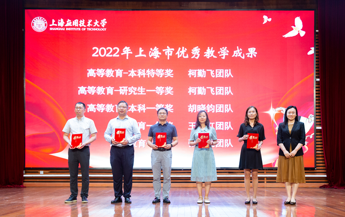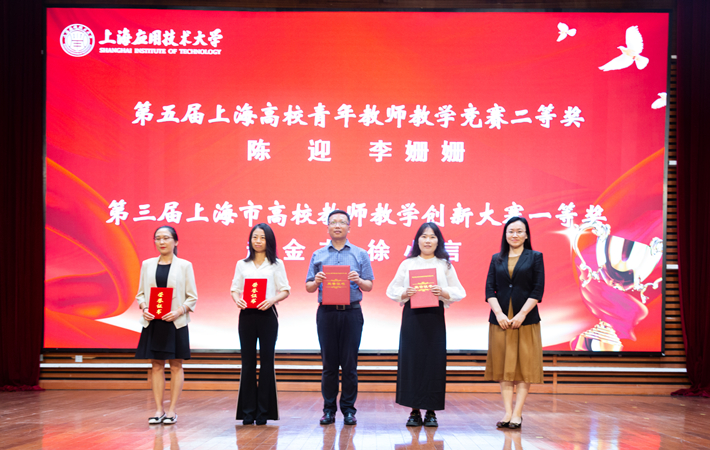 王瑛为上海市优秀教学成果获奖团队,上海高校青年教师教学竞赛二等奖、上海市高校教师教学创新大赛一等奖获奖教师颁发获奖证书