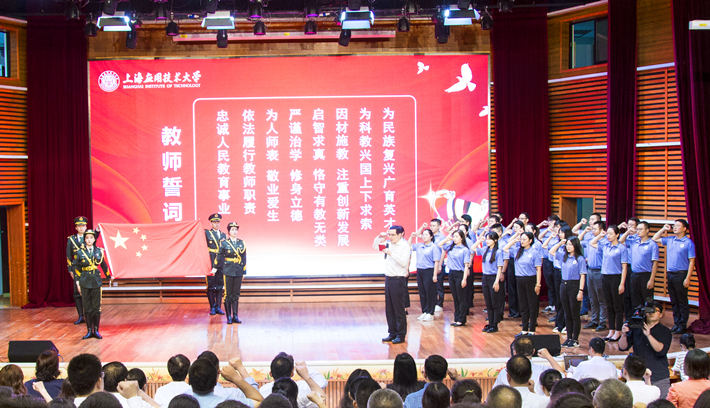 强国必先强教,强教必先强师。一年来,105位教师先后加入上应大,为学校发展注入了新的活力。在经济与管理学院院长熊焰教授的带领下,新进教师代表举行了庄严的入职宣誓,“为科教兴国,上下求索;为民族复兴,广育英才……”铮铮誓言彰显师者初心。