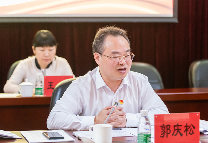 郭庆松代表班子作对照检查,聚焦民主生活会主题,认真对照理论学习、政治素质、能力本领、担当作为、工作作风、廉洁自律等6个方面突出问题,特别是对照习近平总书记关于以学铸魂、以学增智、以学正风、以学促干的12条具体要求,对照查摆问题,深入剖析原因,明确整改举措。