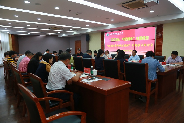 9月30日下午,根据学校“不忘初心、牢记使命”主题教育总体安排,校领导班子围绕“政治纪律和政治规矩”举行专题学习研讨会。校党委书记刘宇陆,校党委副书记、校长柯勤飞,校党委副书记宋敏娟,校党委副书记、纪委书记何星海,校党委副书记、副校长王瑛,副校长张锁怀,党委常委、宣传部长杨明,党委常委、组织部统战部部长王占勇出席会议。