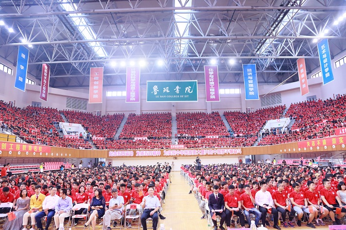 金秋丰收时节,气候宜人,美丽的上应大校园迎来了2019级新生们。9月12日上午,上海应用技术大学2019级新生开学典礼在奉贤校区体育馆隆重举行,四千多名新生为了共同的智造强国梦想相聚上应大,扬帆起航,开启新的人生征程。校领导刘宇陆、柯勤飞、宋敏娟、何星海、王瑛、毛祥东,学校各学院、职能部处负责人及教师代表、新生辅导员、班导师、家长代表、中学校长代表等共聚一堂,共同见证这个温馨而又激动人心的时刻。开学典礼由校党委副书记宋敏娟主持。校党委学工部部长、学生处处长袁翔介绍出席开学典礼的校领导及各学院出席典礼的党政负责人。