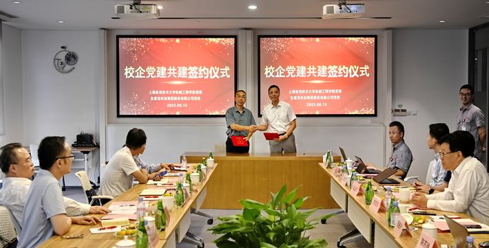 东富龙公司党委书记、副总裁唐惠兴与机械工程学院党委书记杨瑞君续签了双方的校企党建共建协议。技术中心经理程丽华围绕产学研合作,介绍了东富龙产学研成果、近期技术合作需求及未来深挖方向;工程公司验证经理陈苏玲在数字化教学资源共建方面介绍了AR/VR数字化教学、产教融合及案例分享;人力中心副总监朱传星结合公司的职业发展与专业需求、员工培养模式,就学生的联合培养和精准就业需求、学生实习基地与联合培养共建等进行了交流;上海安比来科技有限公司总经理唐侃介绍了VR虚拟样机、VR机械臂培训、MR操作指引、线上科技成果馆等虚拟技术的应用。