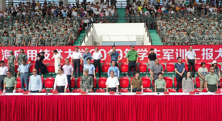 9月12日上午,我校2019级学生军训汇报大会在奉贤校区举行。校党委书记刘宇陆,校党委副书记、校长柯勤飞,校党委副书记宋敏娟,校党委副书记、纪委书记何星海,校党委副书记、副校长王瑛,副校长毛祥东,中国人民解放军73181部队政治部主任刘国华中校,军训团副团长、校党委学工部部长袁翔,军训团副团长、校武装部部长杨军出席大会。大会由宋敏娟主持。