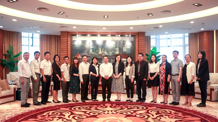 王瑛对越南胡志明市公务员团来访表示热烈欢迎。她指出,中越友谊万古长存,中越文明的交流源远流长。在这样的大背景下,我校注重校级层面与越方有关方面开展人文交流,招收越南留学生。她介绍了我校基本情况,着重介绍了我校在香精香料化妆品、智能制造和艺术与文创领域的最新进展。她表示,此次胡志明市公务员团来访将成为推进我校与越南高校和企业开展合作的契机。