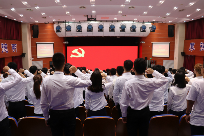 而香料香精技术与工程学院的毕业生党员则举办了“党史知识竞赛闯关式”党课,最后一关是背诵入党誓词。听着熟悉的誓言,看着面向党旗庄严宣誓的背影,参加西部计划志愿服务的曾彩玲说:“在座的每一位党员都深受感染,更加明确了要做一个‘懂党’的人,而我也要在未来的岁月中通过服务西部,用最接地气的一线‘教科书’,让自己更加坚定党的信仰,不忘初心、牢记使命,脚踏实地,做一个爱岗敬业的共产党员。”