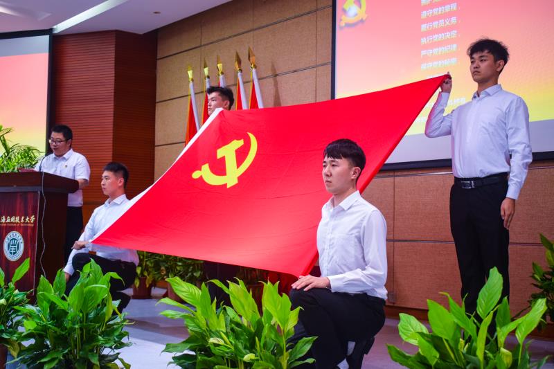 校优秀党务工作者、马克思主义学院直属党支部副书记杨燕华和机械学院学生党员郭园元分别代表教职工党员和新党员做了发言。最后,宣誓仪式在雄壮的《国际歌》声中闭幕。