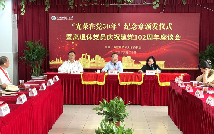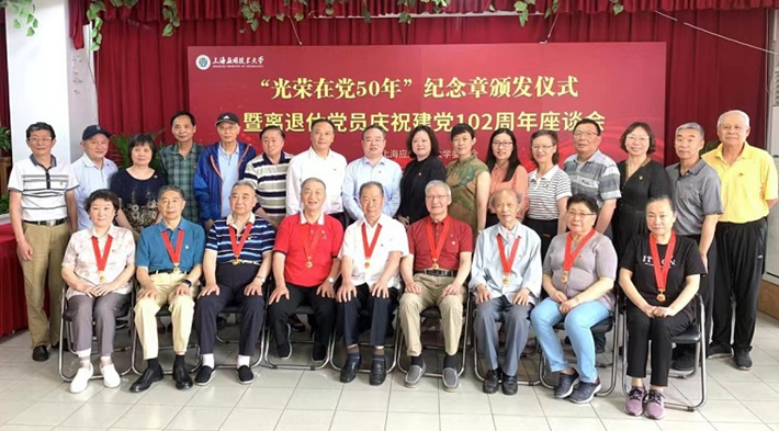 学校举行“光荣在党50年”纪念章颁发仪式暨离退休党员庆祝建党102周年座谈会