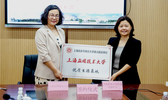 6月20日,上海应用技术大学优质生源基地签约仪式暨授牌仪式在华东师范大学附属周浦中学举行,校招生办主任陈岚代表学校与周浦中学签订优质生源基地协议。华东师范大学附属周浦中学校长徐凤、书记傅国出席仪式。