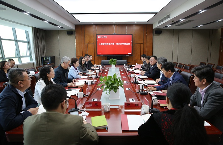 柯勤飞介绍了学校近年来在办学、学科和人才培养方面的取得成绩与特色亮点,特别是学校在上海高水平地方应用型高校建设上的设想与举措。蒋军成介绍了常州大学基本情况和办学发展情况,着重介绍了在人才培养、校企合作、人才引进方面的具体做法。蒋军成表示,常州大学和上海应用技术大学在应用型人才培养、对接行业企业需求方面有许多互通之处,期待在未来能够开展更多交流与合作。双方就人才培养、产业学院建设、师资队伍建设和国际交流等方面进行了深入交流。