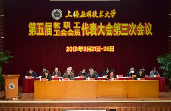 3月28日下午,为期一周的上海应用技术大学第五届教职工代表大会暨工会会员代表大会(以下简称“双代会”)第三次会议举行闭幕会。校党委书记刘宇陆出席并以《新时代新使命,全力推进高水平应用技术大学建设》为题发表讲话。校党委副书记、工会主席宋敏娟主持大会,副校长张锁怀出席。全校正式代表及列席代表近130人参加会议。