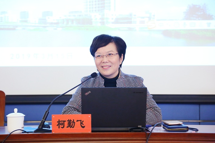 柯勤飞重点从“以学科建设为引领,推进高质量内涵建设”和“青年教师专业发展内涵、动力和路径”两方面阐述了学科建设与教师专业发展。她强调,只有凝练好学科方向、重视学科队伍建设、加强人才培养、做好科学研究、建设学科平台,才能真正推进应用型大学高质量内涵建设;新时代高校教师是推进中国特色社会主义建设、“中国梦”的重要生力军。新时代教育建设需要注入新鲜血液,新时代上应大教育建设也需要各位新进教师的加盟。她要求,新进教师要熟悉校情、师情、生情,更快地融入学校的快速发展,要注重专业发展内涵、动力和路径。要树立“三心”、“三术”,即要有仁爱之心、进取之心和责任之心,要追求学术、讲求技术、力求艺术。她指出,学校将进一步加强师资队伍建设、拓宽青年教师发展渠道,激发一线教师活力,让新时代教师具有岗位幸福感、事业成就感和职业荣誉感。最后,柯勤飞激励青年教师们尽快融入上应大、积极拥抱上应大,勇于追逐新目标,为上应大的建设发展不断添砖加瓦。