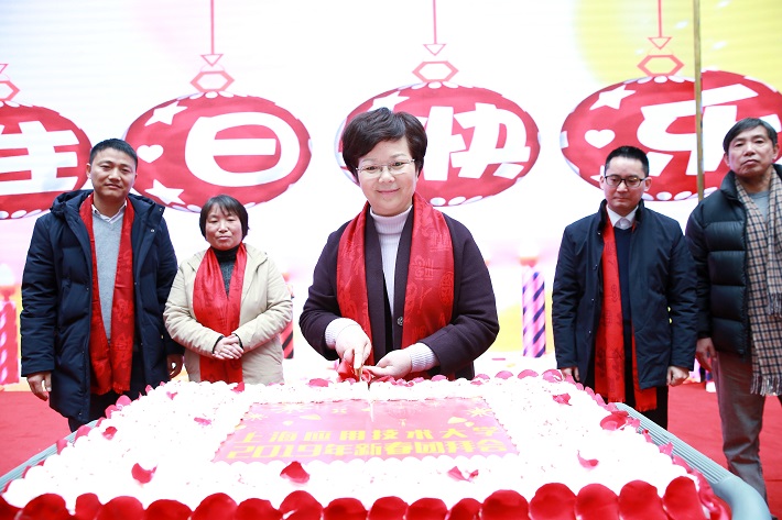 团拜会上,刘宇陆和4位教职工作为本命年代表进行了现场拜年活动,向全校师生拜年,共同祝愿学校明天更辉煌;柯勤飞和6位教职工作为一月份生日代表,分享生日蛋糕,共同庆祝生日快乐、学校未来更美好。