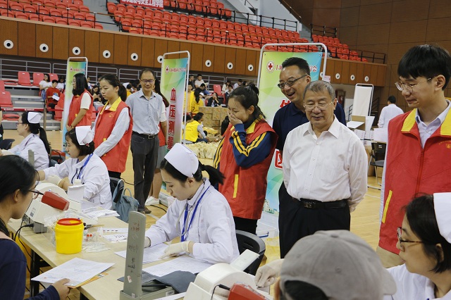 9月26日至27日,学校开展无偿献血活动,校党委书记刘宇陆、校党委副书记宋敏娟、副校长毛祥东等亲临活动现场慰问献血师生。在校红十字会志愿者引导下,献血现场各环节井然有序开展,前来献血的同学们热情高涨,积极询问献血事项并踊跃献血。尽管部分同学因身体原因未能献血,但是大家想要献血的热情依旧高涨。