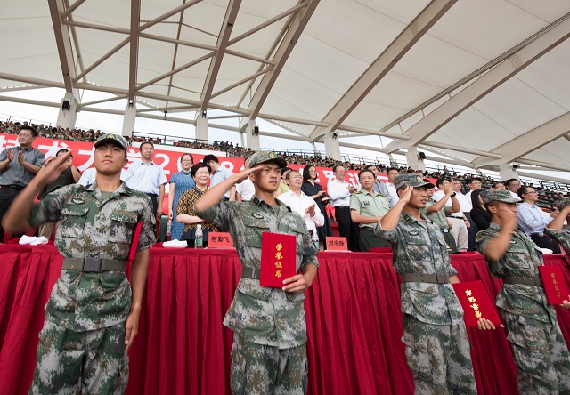 会上,何星海宣读了2018年应征入伍的学生名单;王瑛宣读了优秀教官、优秀指导员的表彰决定;毛祥东宣读了优秀学员、优秀寝室的表彰决定。校领导及承训部队领导向优秀教官和优秀指导员颁发荣誉证书,并为入伍学生佩带大红花。