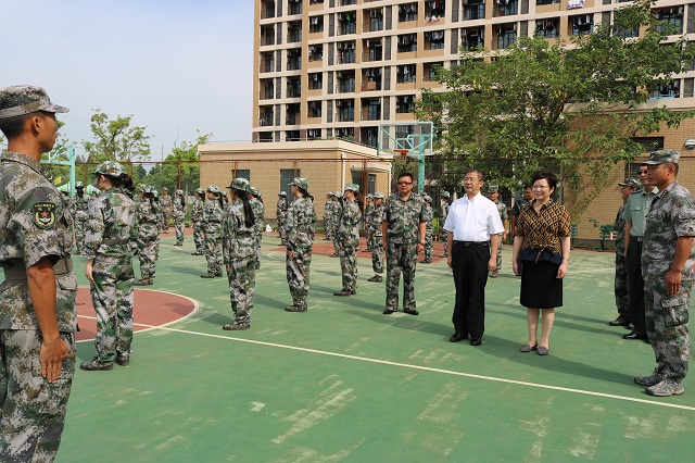 9月10日上午,校党委书记刘宇陆,校党委副书记、校长柯勤飞来到军训现场,亲切慰问正在紧张训练的承训教官、参训学生及工作人员,向校军训工作小组人员和教官了解军训有关情况,并观看了参训学生的列队训练。校领导还特别看望了正在参训的少数民族预科班同学和特教班15位参训同学。