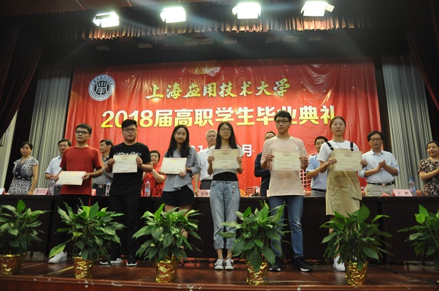 会上宣读了2018年上海市优秀毕业生名单和校级优秀毕业生名单,并向他们颁发荣誉证书。全体2018届毕业生在悠扬欢乐的乐曲中上台领取毕业证书。最后全体起立,奏唱毕业歌,2018届高职毕业典礼划上了圆满句号。