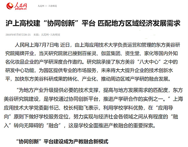 【人民网】沪上高校建“协同创新”平台 匹配地方区域经济发展需求
