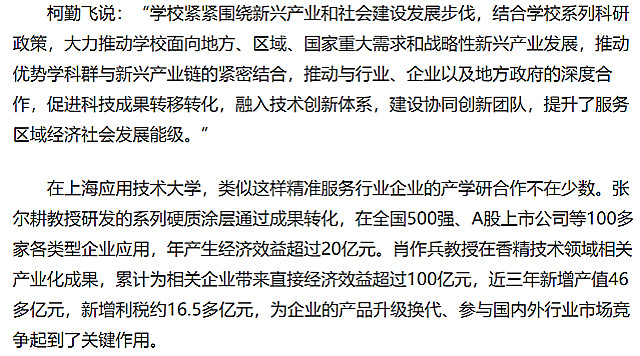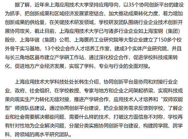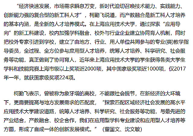 近日,社会主流媒体就我校产教融合工作作相关采访,人民网、光明网等分别以“沪上高校建“协同创新”平台 匹配地方区域经济发展需求”“上海应用技术大学走产教融合协同育人之路”为题作了专题报道,以下为人民网报道内容: