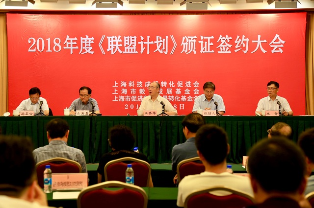 6月28日,由上海科技成果转化促进会、上海市教育发展基金会和上海市促进科技成果转化基金会共同举办的“2018年度联盟计划签约颁证大会”在上海市政协江海厅举行。上海科技成果转化促进会原会长王荣华、现任会长朱英磊,市政协副秘书长张喆人,科技成果转化促进会常务副会长兼秘书长王奇,副理事长、专家委员会主任孙正心等出席。我校科技处人员及相关教师参会。