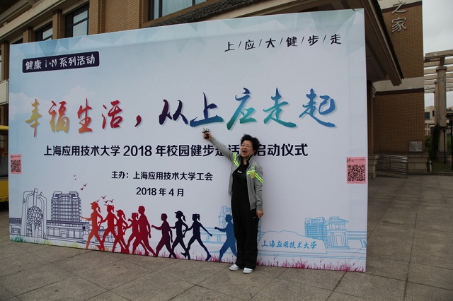 4月12日,“幸福生活,从上应走起”上海应用技术大学2018年健步走活动启动,校党委副书记宋敏娟出席启动仪式并为活动鸣发令枪。80余名教职工参加启动仪式。仪式由校工会常务副主席张淑梅主持。
