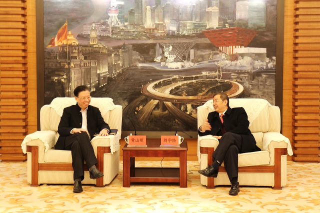 刘宇陆代表学校对黄山明一行表示热烈欢迎。他简要介绍了学校的发展现状和办学特色,重点就学校民进会员的基本情况进行了交流。他表示,学校将全面贯彻落实中央和市委关于统战工作的决策部署与工作要求,切实推进统战工作科学发展。他强调,民主党派是学校事业发展的一支重要力量,校党委高度重视各党派的建设与发展,希望民进上海市委与学校一起为培育优秀党外代表人士创造更好的条件、搭建更多的平台。