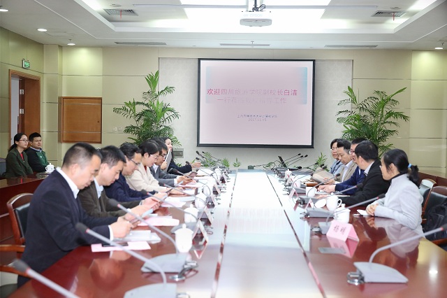 11月15日,校党委常委、宣传部长杨明热情接待了来访的四川旅游学院副校长白洁一行,陪同来宾们参观并详细讲解了我校“奋进新时代 共筑中国梦”2013—2017主题成就展。