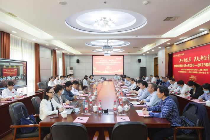 5月27日,学校举行学习贯彻习近平新时代中国特色社会主义思想主题教育读书班暨校党委中心组(扩大)学习会,由上海应用技术大学、上海市领导科学学会联合主办,学校马克思主义学院承办的第22届上海市社会科学普及活动周“把党的创新理论内化于心外化于行——社科工作者走近大学师生”活动同期举行。校党委书记、上海市领导科学学会会长郭庆松出席会议并作专题报告,校党委副书记陈海瑾主持会议并进行集中领学。
