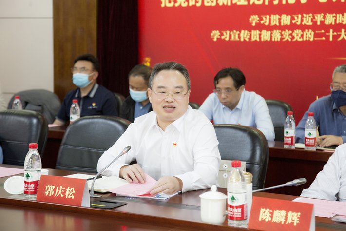 郭庆松强调,遵照上级部署,全校上下正在紧锣密鼓深入开展学习贯彻习近平新时代中国特色社会主义思想主题教育。落实主题教育“学思想、强党性、重实践、建新功”的总要求,主题教育学习会、社会科学普及活动、调研咨询会“学思用”相结合,把学习贯彻习近平新时代中国特色社会主义思想引向深入,旨在回答时代之问、指导实践之向、谱写未来之路。我们要结合实际,认真学习领会并深刻掌握习近平新时代中国特色社会主义思想精神实质和核心要义,切实贯彻落实到立德树人的全过程和各领域;我们要坚持把党的创新理论内化于心外化于行,进一步统一思想、统一意志、统一行动,坚持不懈将用习近平新时代中国特色社会主义思想凝心聚力,奋力开创学校高质量发展的新局面。