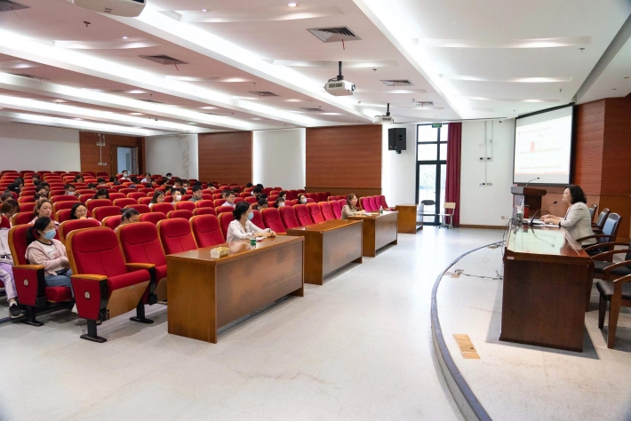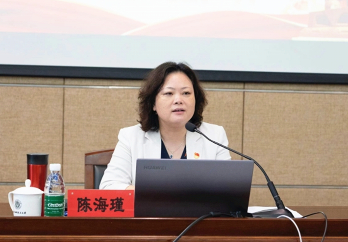 陈海瑾首先阐释了人才队伍培养和师德师风建设在高等教育事业发展中的重要性。她以“功以才成,业以才广”勉励各位新进教师,要在学校的事业发展中找准自己的定位,明确事业准求目标,科学把握面临的机遇和挑战,肩负责任,勇挑重担,创新发展。陈海瑾围绕主题教育,带领大家共同学习了习近平新时代中国特色社会主义思想中有关“人才工作”和“师德师风”的相关内容,让广大教师真切感受到党和习近平总书记对人才队伍建设的高度重视,牢记立德树人的光荣职责与使命。同时,陈海瑾领学《新时代高校教师职业行为十项准则》《研究生导师指导行为准则》两项师德规范,进一步强化了广大教师不忘育人初心、规范职业行为、筑牢师德底线的决心和信心。陈海瑾从“理论铸德,课堂育德,典型树德,规矩立德”四个方面为广大教师不断明德修身、涵养高尚师德、提高育德能力指明了努力的方向。