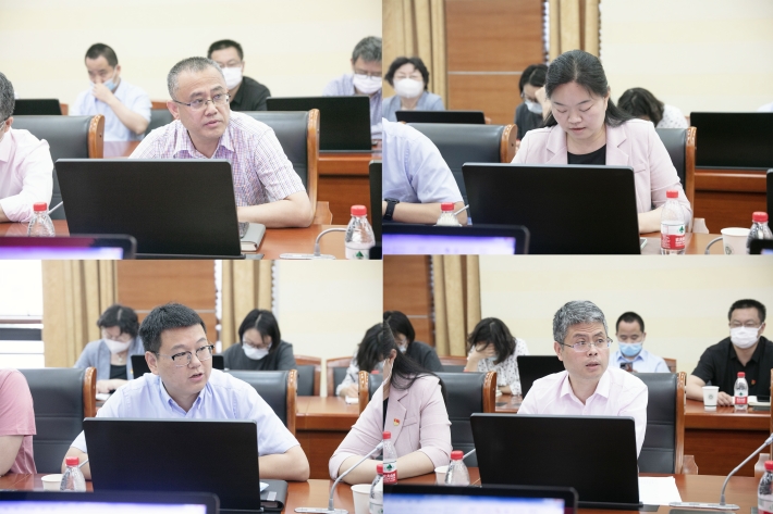 香料香精化妆品学部党委书记王化田、外国语学院党总支书记杨雪、理学院党委书记陈雷、机关党委书记许建强围绕党建事业共融共促,结合部门特色,分享开展主题教育工作、谋划推进事业发展等方面的经验做法和工作成效。