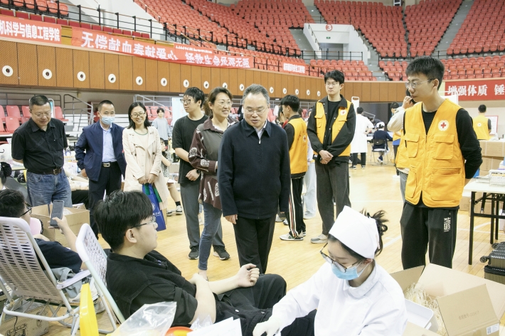 5月16日-5月19日,学校开展为期四天的无偿献血活动。期间,校党委书记郭庆松,党委副书记陈海瑾,副校长毛祥东先后到现场慰问献血师生以及医务工作者、学生志愿者等,党办、后勤保障与服务中心等部门负责人陪同。