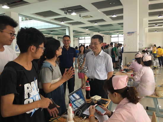 在两天的献血活动中,校长陆靖、副校长张锁怀亲临现场关心、慰问参加献血的师生。陆靖逐一慰问了体检区、化验区、采血区、护理区、休息区的献血师生,并对红会志愿者的志愿工作表示肯定,他提出对在校献血满3次的学生进行先进表彰,弘扬学生的奉献精神、引领学校的志愿者工作。