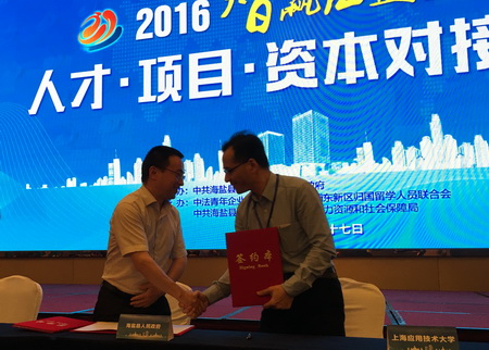 5月27日,我校副校长陈东辉出席浙江省海盐县2016年“智赢海盐”新兴产业“人才·项目·资本”对接会,并代表学校与海盐县政府签署合作框架协议。协议拟将海盐的产业、资源优势与高校科研院所的人才、科技优势紧密结合,加快科技成果的转化,实现院校、企业和地方的共赢。