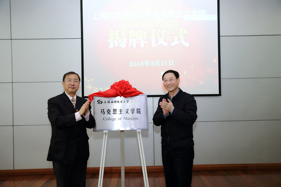 沙军宣读了上海应用技术大学关于成立马克思主义学院的正式文件。高德毅与刘宇陆共同为上海应用技术大学马克思主义学院揭牌,整个会场洋溢在一片热烈而庄重的喜庆氛围之中。