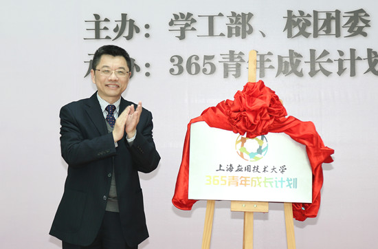 陆靖在仪式上为“365青年成长计划”LOGO揭牌,正式开启了我校师生的365之旅。