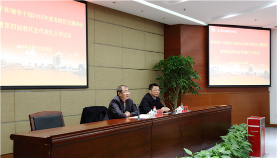 12月28日,学校在奉贤图书馆B101举行校领导班子和领导干部述职测评,校领导班子成员、两委委员、中层正职干部、校教代会代表、民主党派代表等200余人出席会议。校党委书记刘宇陆代表校领导班子作述职报告,校长陆靖主持会议。