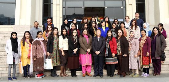 巴基斯坦女教师代表团一行30人,分别来自伊斯兰堡、拉瓦尔品第、白沙瓦、拉合尔、费萨拉巴德、苏库尔、古吉拉瓦尔等地的8所中学和2个研究所。代表团由中国驻巴基斯坦大使夫人包吉氢组织,计划访问乌鲁木齐、成都、上海和北京的14所高校,以及教育部和国家留学基金委。代表团在沪行程由我校落实并全程陪同,在上海还将访问上海外国语大学和东华大学。