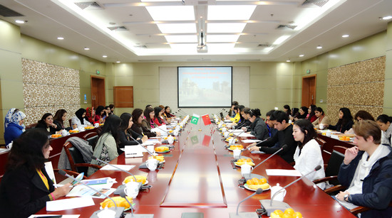 法哈特•艾莎首先对学校的热情接待深表感谢,并介绍了巴基斯坦的教育情况,特别强调了巴基斯坦在保障女性享受均等教育机会及资源,以及女性事业发展方面所取得的不凡成就。法哈特•艾莎还介绍了中国的“一带一路”倡议在巴基斯坦引起的热烈反响和支持,以及“中巴经济走廊”建设的进展。她希望此次巴基斯坦女教师代表团与中国上海高校的实地交流,能够推动更多巴基斯坦学生选择到中国学习,并希望中国高校可以为巴基斯坦学生提供更多的奖学金。