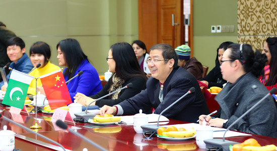 刘宇陆对总领事及代表团的来访表示热烈欢迎,并回顾了中巴牢不可破的传统友谊及巴基斯坦在也门撤侨等重大行动中对中国人民的大力支持。他简要介绍了学校的情况,并表示2015年是中巴友好交流年,在中国与巴基斯坦全天候战略伙伴关系的背景下,希望总领事及代表团的到来能够促成学校对巴基斯坦留学生的接收,进一步扩大中巴之间的人文和教育交流。