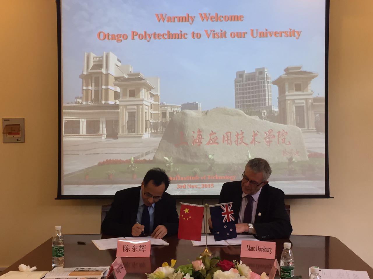 会上,陈东辉和Marc Doesburg分别代表两校签署了《上海应用技术学院和新西兰奥塔哥理工学院合作备忘录》。