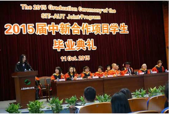 10月11日,2015届应用化学专业(中新合作)学生毕业典礼在我校奉贤校区图书馆B106会议室召开。校党委副书记宋敏娟出席会议并致辞,AUT(奥克兰理工大学)副校长Nigel Hemmington教授代表奥克兰理工大学讲话, AUT研究生院、健康与环境科学学院、文化与社会学院相关负责人,我校国际交流处、教务处和化工学院负责人及教师代表、学生家长参加了典礼。