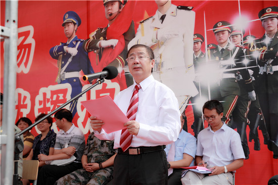 在军训汇报会开始前,首先举行了以“勿忘国耻、圆梦中华”为主题的“开学第一课”活动。张艳萍作讲话。她指出,84年前的今天,日本军国主义在我国东北蓄意制造“九·一八”事变,中国人民由此开始了长达14年的浴血抗日战争。今年还是中国人民抗日战争暨世界反法西斯战争胜利70周年,中国人民艰苦卓绝的抗战,将永载中华民族史册,永载人类和平史册!今天,学校举行隆重的升国旗仪式,旨在让广大师生铭记历史,警示未来。同学们要自觉肩负起历史的重任,为实现中华民族伟大复兴的中国梦贡献自己的力量,以优异的成绩告慰先烈英灵。