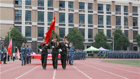 随后举行了军训汇报大会。校长刘宇陆在军训团团长的陪同下依次检阅了各军训方队。