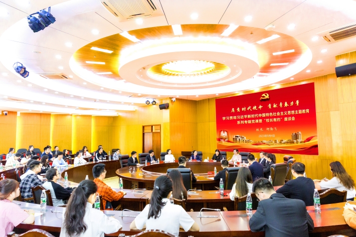 5月4日上午,一堂以“共话青春成长 共赴美好未来”为题的学习贯彻习近平新时代中国特色社会主义思想主题教育专题党课暨“校长有约”座谈会举行,校长柯勤飞与60余名学生党员代表围桌而坐,促膝而谈,通过与大家面对面交流,引领青春之路,回应青春之问,坚定青春理想。